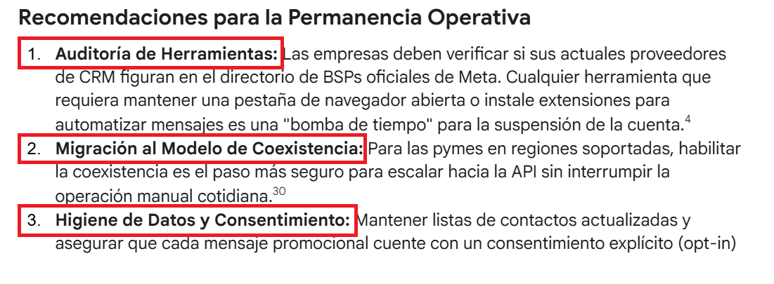 En mi experiencia personal, muchos de estos reportes tienden más a confundir a las personas y empresas en vez de instruirlas y orientarlas sobre las normas de WhatsApp Business. En lo personal, creo que uno de los grandes problemas respecto a normas, es que las personas evitan «a toda costa» leer dichas normas y tratan de buscar atajos para evitar leer o capacitarse sobre dichas normas. En lo personal no recomiendo este tipo de reportes o estudios, ya que tienden a hacer generalizaciones en vez de analizar cada norma o caso específico, lo que sí puede ser útil, es ver un resumen sobre una norma de WhatsApp Business específica, pero luego leer la norma completa en la fuente oficial de WhatsApp.